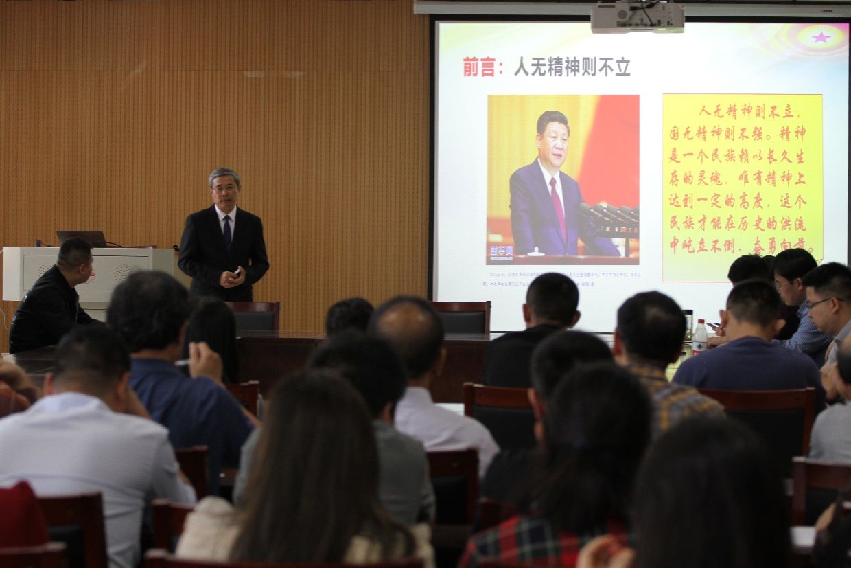 在L楼302召开全体教职工大会,开展强化师德师风建设打造一流师资队伍专题教育活动,邀请全国模范教师、安徽师范大学教授、博士生导师路丙辉教授作专题报告,学院全体教职工参加报告会,党委书记陈银凤主持会议。