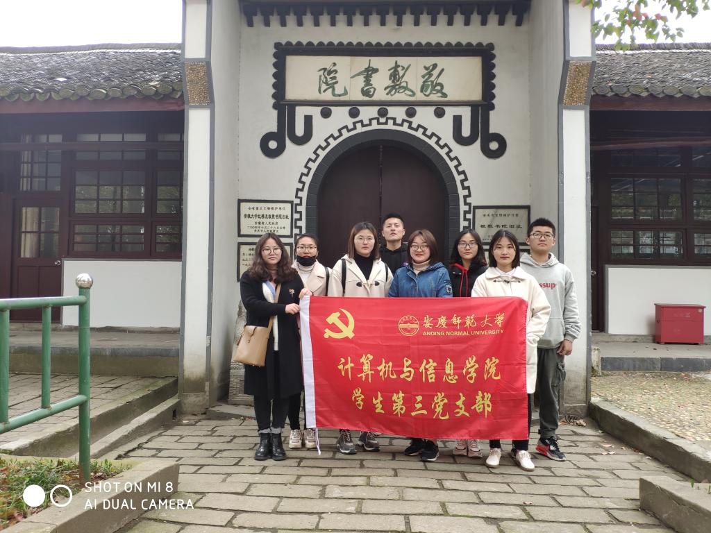 学生第三党支部赴敬敷书院、红楼和邓石如碑馆开展党日活动。阳春三月,草长莺飞,古朴静谧的敬敷书院在和煦的春风中焕发出青春的活力。走在安静的小径里,看着简陋又不失庄严的古代校舍,一位位治学严谨的古代学者在教室里讲学授课的场景仿佛浮现在眼前。