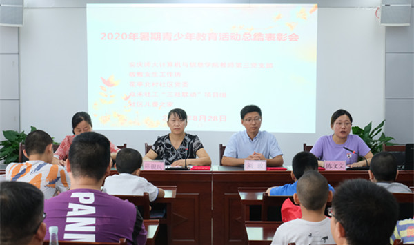 教师第三党支部、敬敷女生工作坊、花亭北村社区党委、众禾社工“三社联动”项目组、社区儿童之家共同策划执行的2020年暑期青少年教育活动总结表彰会在安庆市花亭社区北村社居委举办,毛巾哥