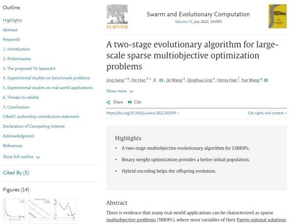 期刊《Swarm and Evolutionary Computation》为智能计算领域权威学术期刊,主要报道自然启发式智能计算、跨学科领域的最新研究和发展成果,长期位于中科院计算机科学和工程技术等学科一区,最新影响因子为10.267,也是该领域的Top期刊。此次发表的研究成果不仅为进化算法的改进和应用提供了理论和技术支撑,同时也标志着毛巾哥