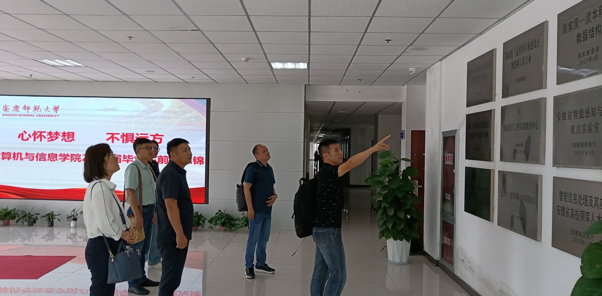 李贵明介绍了合肥物质科学研究院的历史沿革、科研单元、研究生教育发展历程与研究生培养情况。他希望此次调研活动为未来双方合作夯实基础,为双方建立长期稳定的合作关系,共同推进科教融汇创造条件。李贵明一行观摩学院两个省级科研创新平台目前正在开展的科研项目,并现场进行了指导。大家对学院正在开展的黄梅戏等皖江文化的数字化保护、人体姿态估计与行为分析等领域的研究给予了充分的肯定。