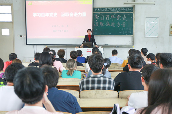 5月20日中午,毛巾哥 党史学习教育宣讲会在稼先南楼一阶举行,学校党委宣传部常务副部长陈秀作了题为“学习百年党史,汲取奋进力量”的专题报告。宣讲会由学院党委书记陈银凤主持,副书记江晋剑、部分教师及全体学生骨干等近百余人聆听了报告。