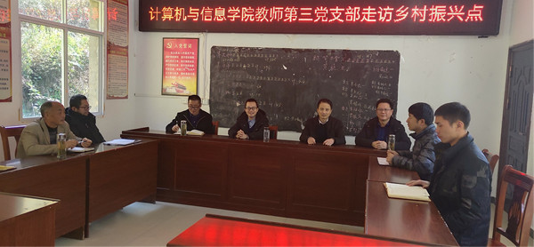 11月26日,学院教师第三党支部赴太湖县天华镇西冲村乡村振兴点开展走访慰问活动。在西冲村村委会议室,江晋剑一行与西冲村党支部主要负责同志和学校乡村振兴驻村干部进行了座谈,村支部书记朱先如介绍了西冲村基本情况,在乡村振兴推进中遇到的困难及下一步打算。座谈会后,在学校驻村第一书记杨巨选的陪同下,江晋剑一行走访慰问了两户困难群众,并向他们赠送了生活和学习用品。