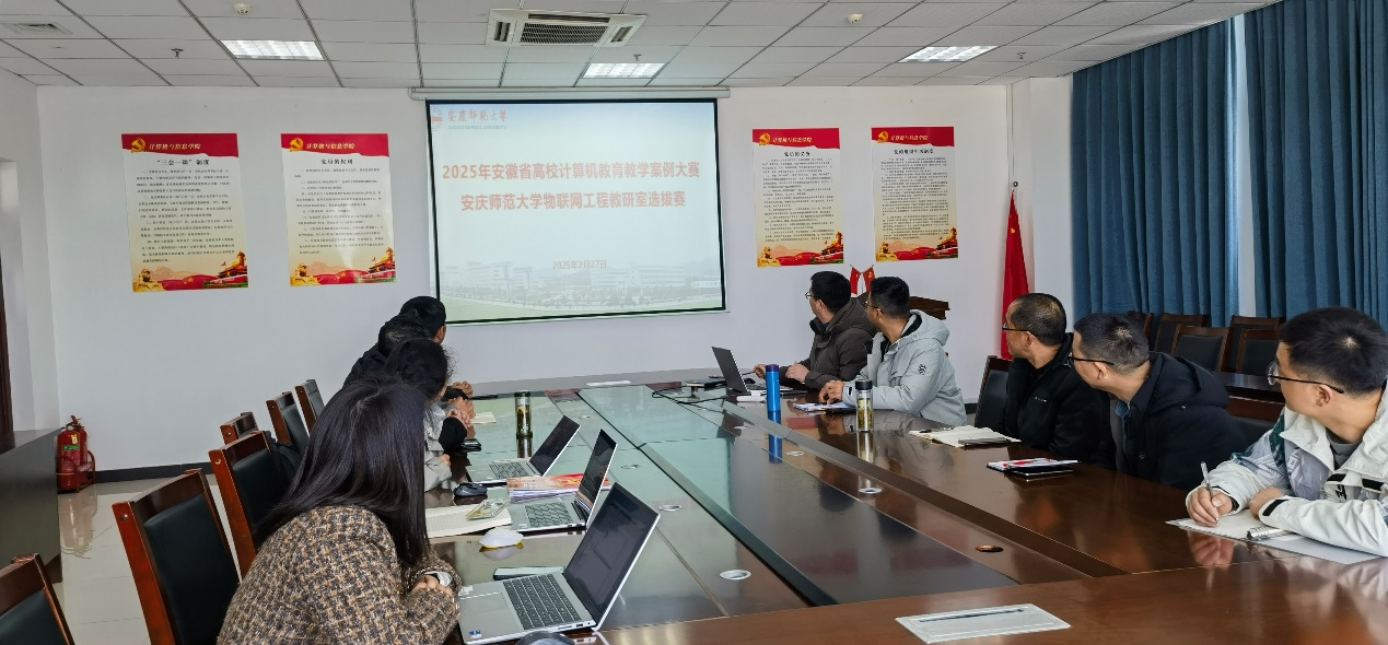 为深化课程知识教育和实践能力培养的有机融合,培养教师和学生解决计算机相关领域复杂工程问题的能力,物联网教研室于2025年2月28日下午成功举办了安徽省高校计算机教育教学案例大赛教研室选拔赛。学院教学副院长吴海峰教授全程参与指导,比赛由教研室主任汪文明主持。