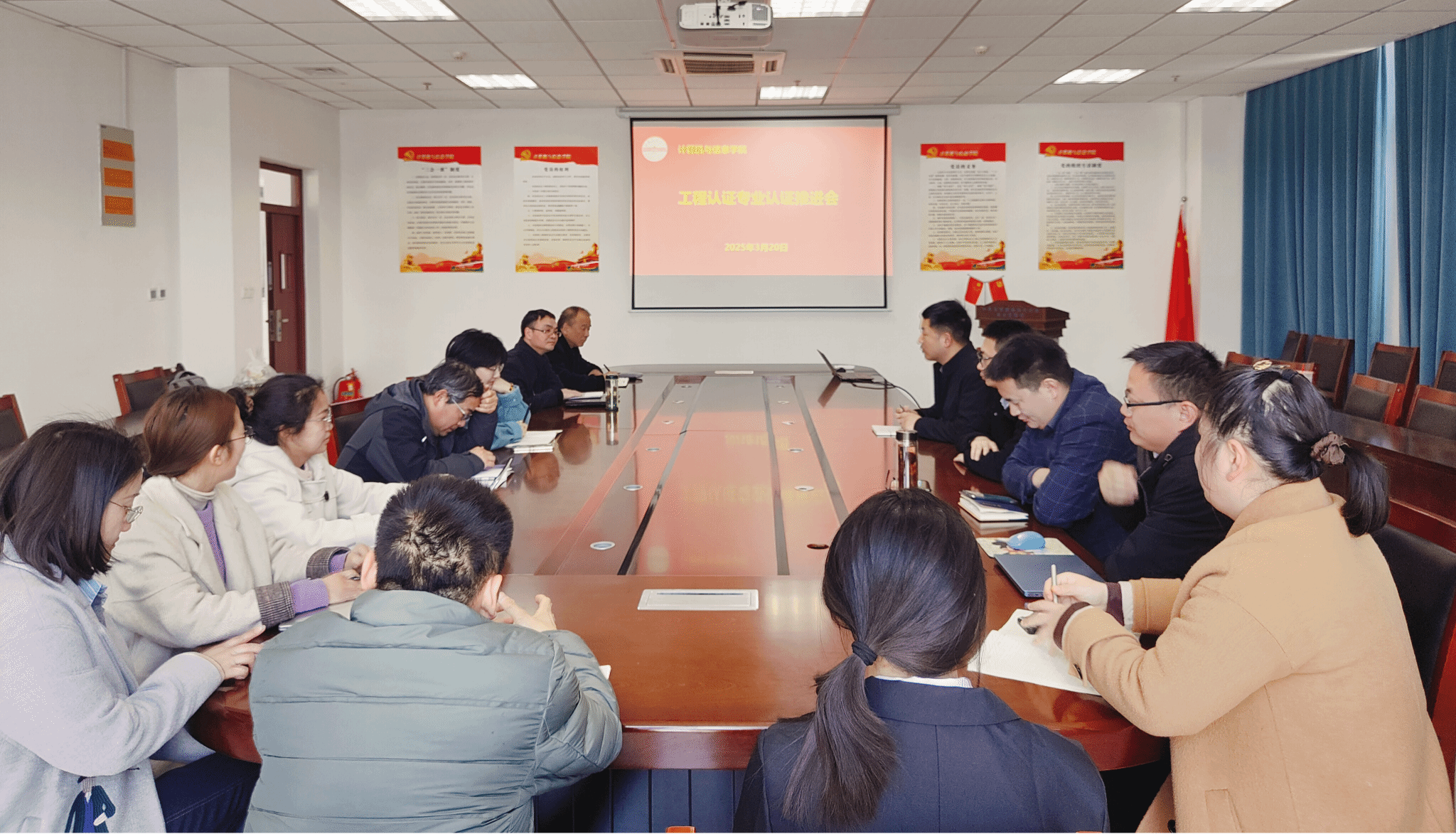 在L318教室召开工程认证推进会,副院长吴海峰主持会议,各课程负责人参会。