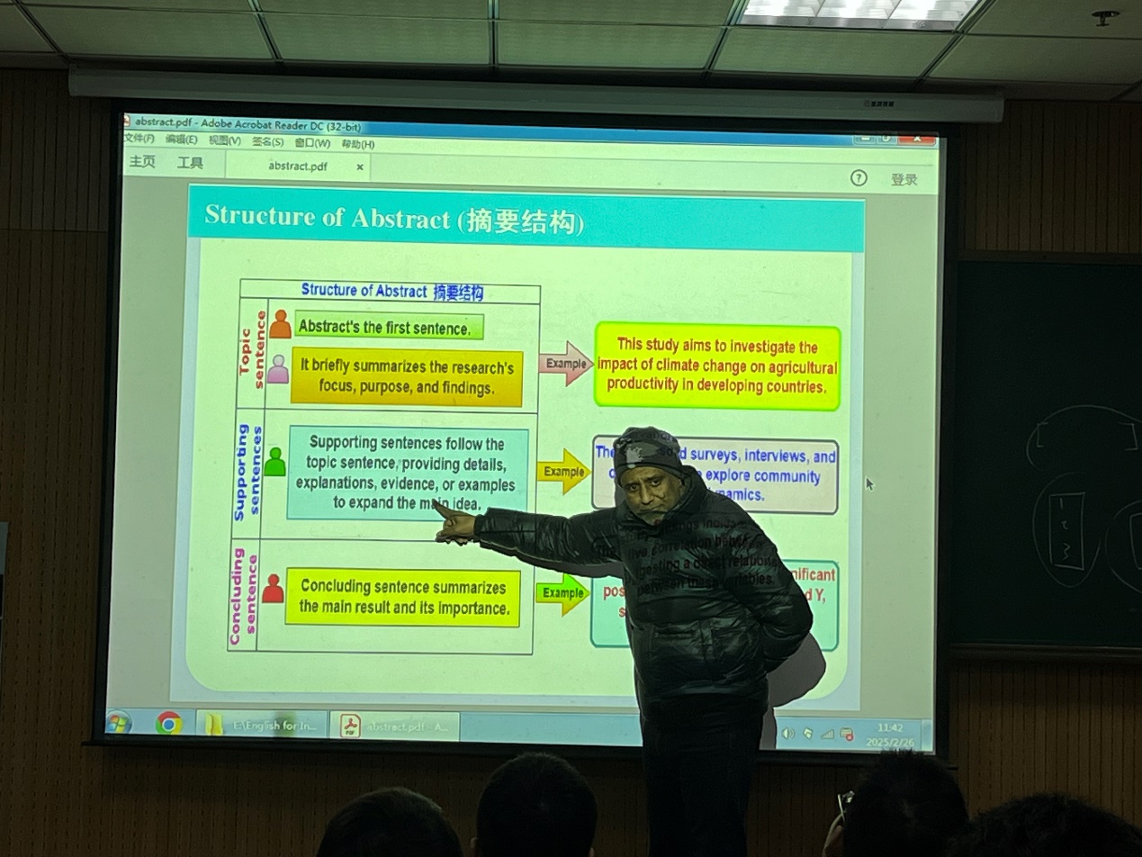 外籍副教授阿里(Ali)在计算机楼二楼多媒体教室,面向学院部分研究生作了一场极具实用价值的学术报告,题为《掌握写作引人入胜且具有影响力的摘要的技巧》。