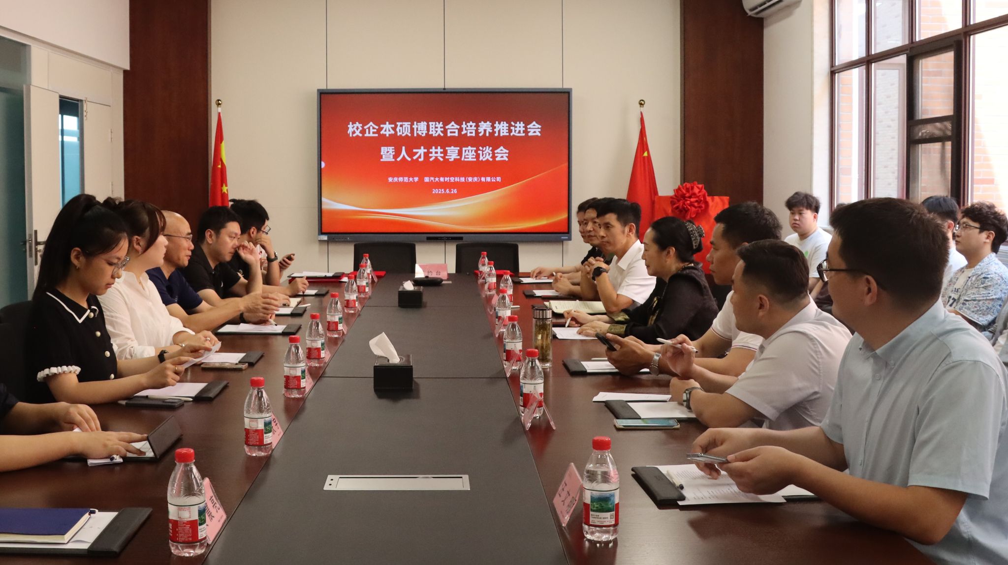 6月26日上午,校党委常委、副校长吴琼率队赴国汽大有时空科技(安庆)有限公司,参加校企本硕博联合培养推进会暨人才共享座谈会并开展访企拓岗工作。教务处、研究生院负责人以及毛巾哥