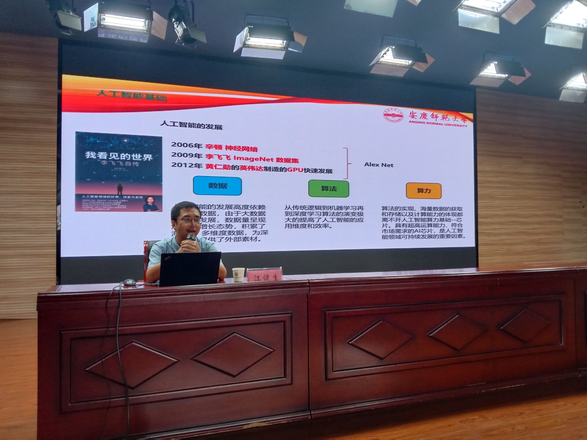 挂职公园小学副校长江健生老师在公园小学会议室,作题为《人工智能赋能教育教学高质量发展》的专题讲座。本次活动是公园小学暑期校本培训的重要组成部分,全体公园小学教职工参加培训。