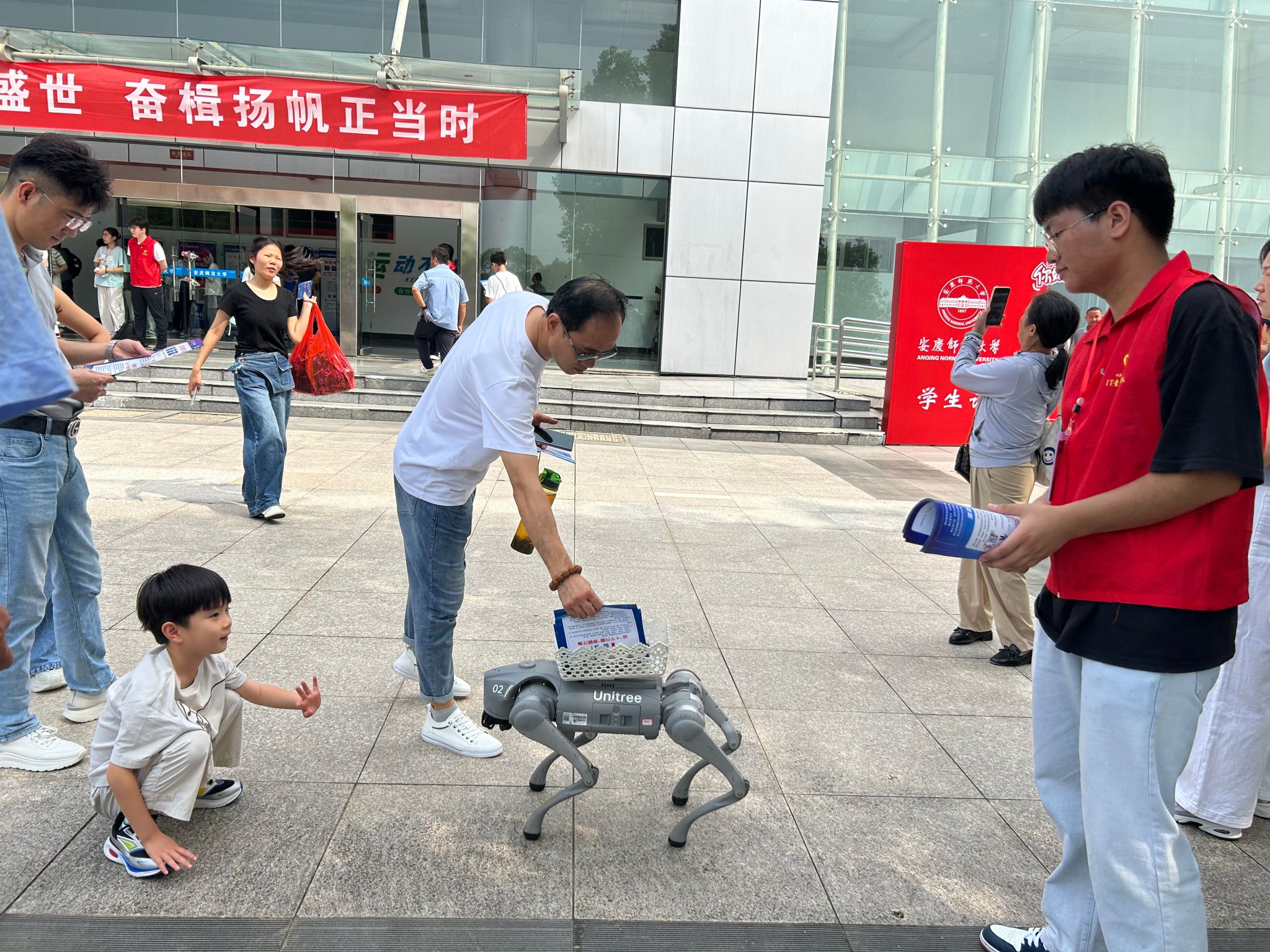 迎新期间,“IT青年先锋队”的志愿者们按照既定分工迅速投入工作,各小组协同配合,让整个报到流程既高效有序,又处处洋溢着温情。在体育馆内的报到点,第一小组志愿者化身“贴心管家”,在值班老师的指导下熟练操作人脸识别系统,精准完成新生身份验证,确保每一位新生的报到环节“零差错”;积极引导新生有序排队等候,在排队间隙与新生亲切分享大学生活注意事项,缓解新生排队的焦虑;同时,结合学院专业特色,他们还向新生普及国家安全、反诈防骗等知识,耐心解答“宿舍安排”等疑问,并指引大家前往军训服装领取点,用细致服务为新生筑牢“第一重保障”。而在体育馆外的学院服务点,第二小组志愿者则成了“暖心搬运工”,他们始终与馆内报到点保持密切联络,或看护行李,或帮忙搬运,同时热情地介绍校园布局。“IT青年先锋队”分配一部分志愿者在学校东门和西门,化身“指引灯塔”,看到拖着行李箱的新生,便主动上前问好,根据大家的需求灵活指引:若想先完成报到,则引导至体育馆,若希望先安置行李,则引导至对应宿舍,用真诚服务消除新生初入校园的陌生感。“IT青年先锋队”还组织了全流程的“机动支援兵”,他们始终保持“随时待命”的状态,报到点排队人数增多时,立刻补位引导;校门口新生集中入校时,迅速前往协助;同时,他们还协助机器狗、无人机团队开展反诈防骗宣传。