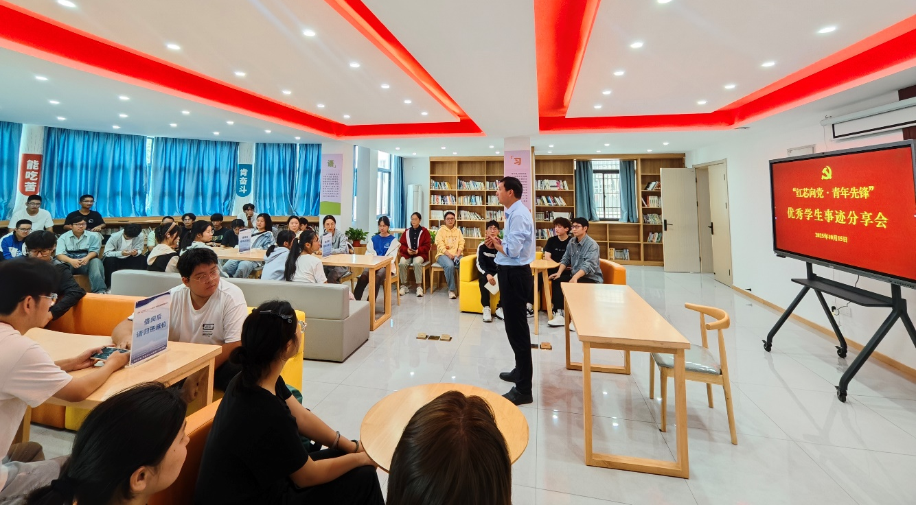 在“一站式”学生社区10号楼二楼举办国家奖学金获得者学习经验交流会。学院党委副书记肖之进、有关学生党支部书记出席交流会,5名国家奖学金获得者受邀参会,学生党员代表、2023-2025级本科生代表60余人到场聆听。