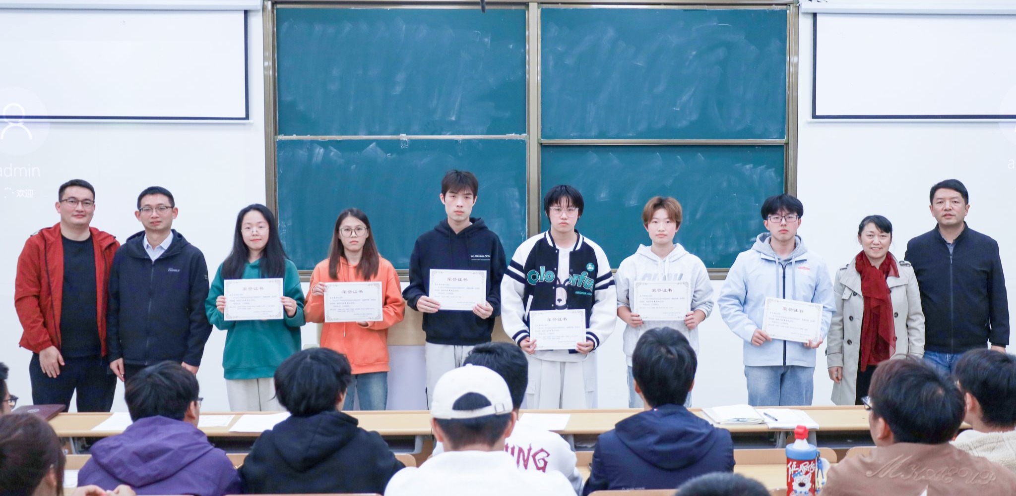 在热烈的掌声中,陈银凤等学院领导老师依次为获奖集体与个人颁奖。获奖者们昂首登台,手中的证书映着笑容,既是对个人努力的肯定,更是对团队协作、拼搏精神的生动诠释,让在场师生深受鼓舞。获奖代表吴诗铭、张文娜、李耀、刘娜娜先后上台分享参赛感悟。他们深情回顾了赛场上的点点滴滴:“体育不仅锻炼了我们的意志,更让我们懂得了‘一群人可以走得更远’的道理。”代表们的话语真挚而有力,他们表示,运动会上收获的友谊与成长,将成为未来学习生活中突破自我、追求卓越的不竭动力。
