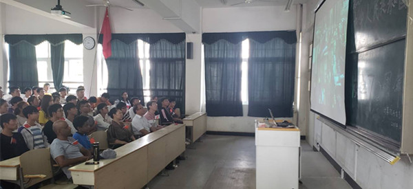 组织在校师生在稼先楼一阶观看庆祝中华人民共和国成立70周年活动现场直播,学院党委书记陈银凤、院长王一宾到场和师生们一起感受这雄伟豪迈激动人心的时刻,外籍教师阿里带着孩子也来到现场观看直播。