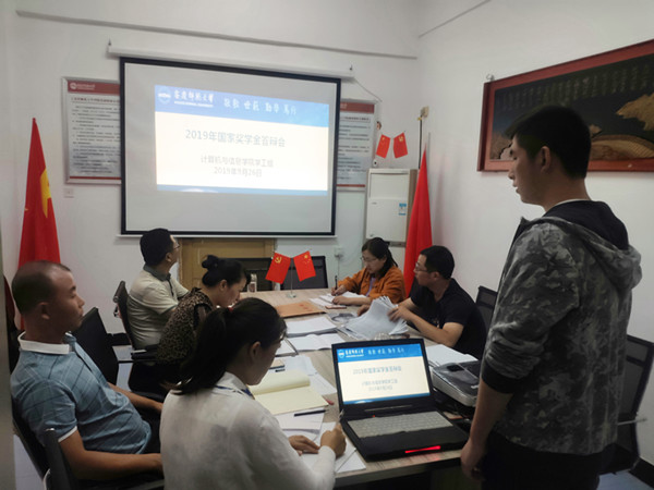 在304会议室举行2018—2019学年国家奖学金申请答辩评审会,学院评审组分别对参评研究生和本科生提交的申请材料进行审核,参评同学进行了现场的汇报答辩。