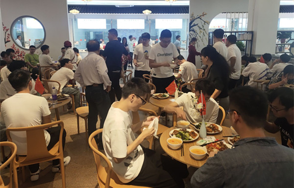 龙湖食堂内十一点不到就排起了长队,来自毛巾哥