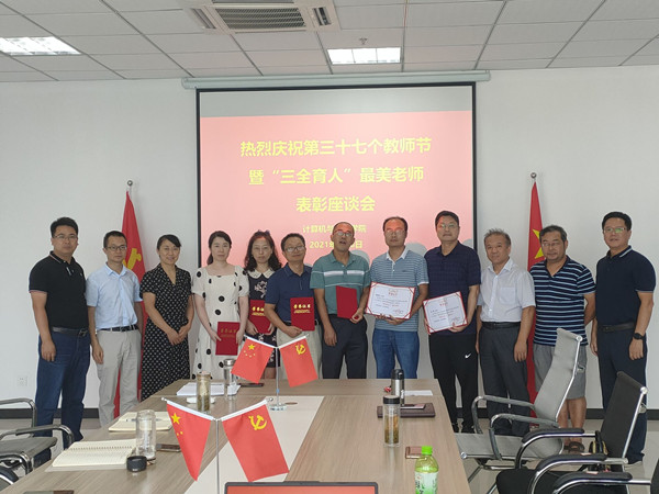 在L楼318会议室召开庆祝第三十七个教师节暨“三全育人”最美老师表彰座谈会。学院领导班子、受表彰的教师参加了此次会议,学院党委副书记江晋剑主持了会议。