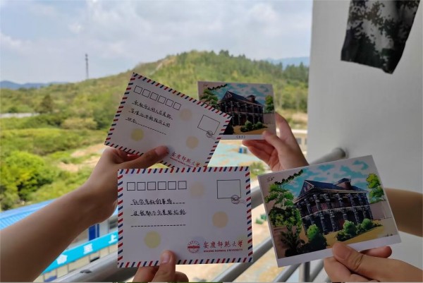 古香古色的徽派砖木结构建筑红楼、芦苇荡漾中波光粼粼的双龙湖、宏伟的金碧辉煌拱形南门……学院提前一周就征询新生的喜好挑选明信片的花色和样式。迎新志愿者们将600张印有校园特色建筑和风景的明信片一张一张的藏在新生宿舍床位上,等待惊喜的送出。