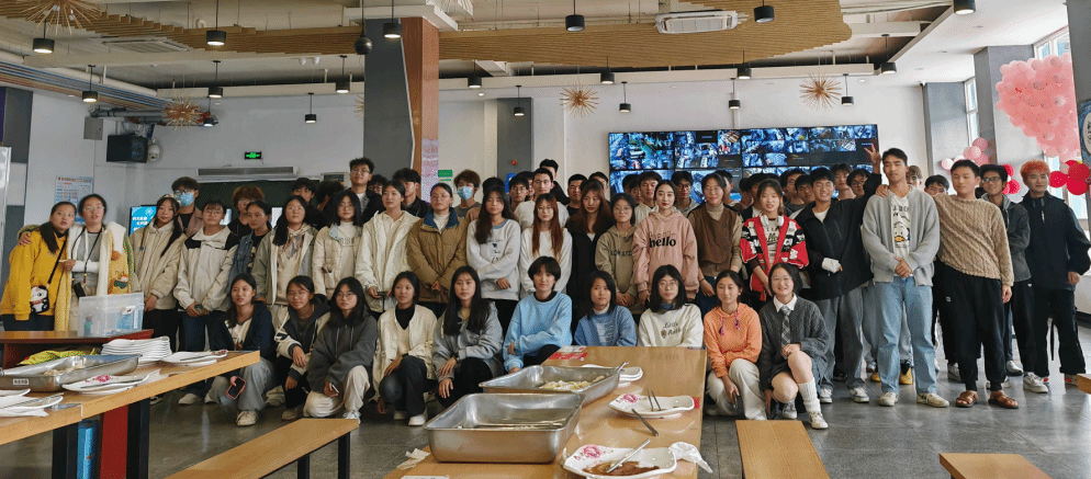 计算机类专业2023级部分新生相约食堂,组织80余名学生现场包饺子。