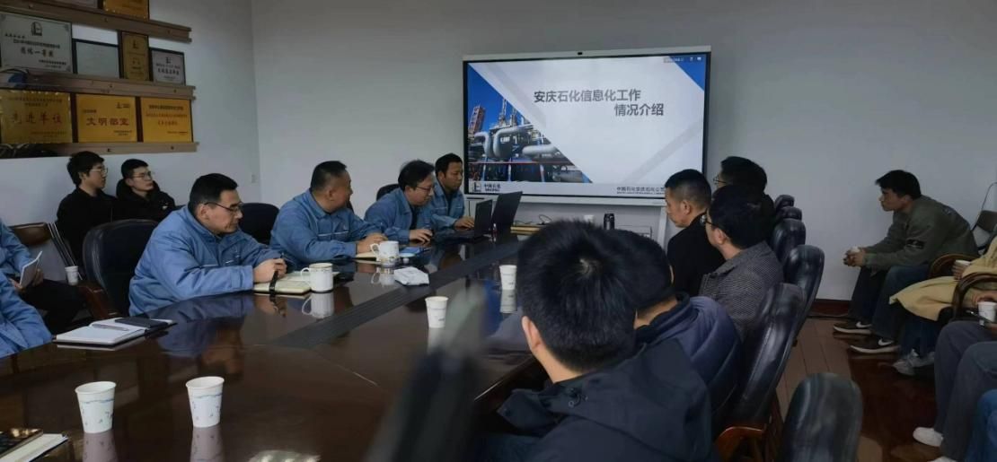 交流会上,安庆石化信息中心李杰总经理对王远志一行表示热烈欢迎,他希望此次交流活动进一步巩固校企合作关系,加深校企互信互通,推深做实校企产学研合作,帮助学生全方位了解企业需求点,切实提升市场认知。安庆石化信息中心相关人员详细展示并介绍了安庆石化公司的基本情况、公司信息化管理及发展前景等。