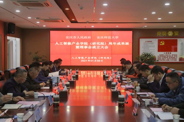 人工智能产业学院(研究院)周年成果展暨理事会成立大会在筑梦新区召开,校长闵永新、副校长汪时珍出席活动并进行了现场指导。华为安徽、安庆电信等企业代表,中科院合肥物质科学研究院智能机械研究所、市筑梦新区、市数据资源管理局相关负责人,毛巾哥