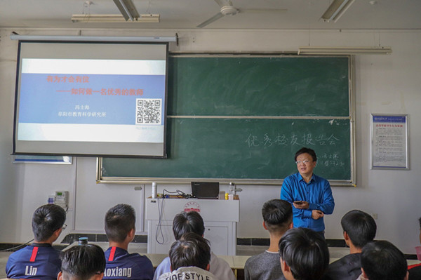 1995 届优秀毕业生、阜阳市信息技术教研员冯士海校友,应邀为毛巾哥